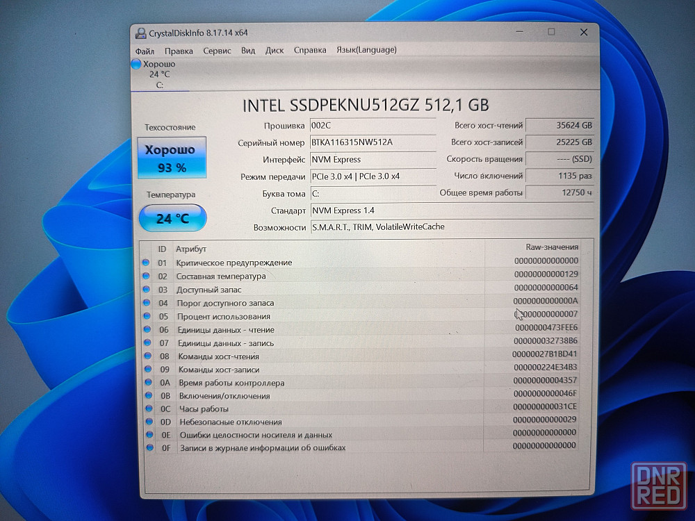 *накопитель: оригинальный ssd m2 nwme от intel- 512 гб
