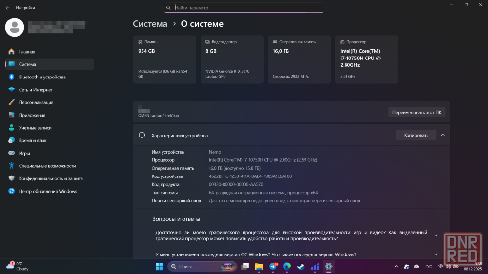 графика: nvidia rtx 3070, 8 гб видеопамяти