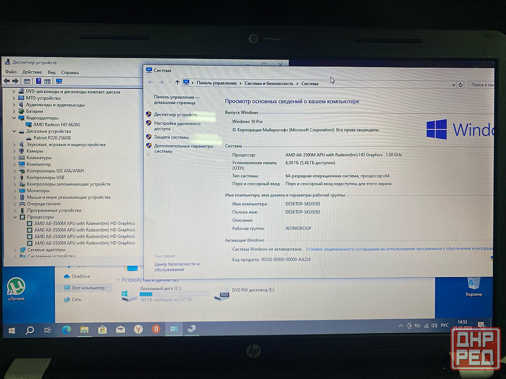 Ноутбук HP g6-1312sr A8-3500m DDR3 6Gb SSD 256GB Radeon HD6620G Win10 ₽ 15 999