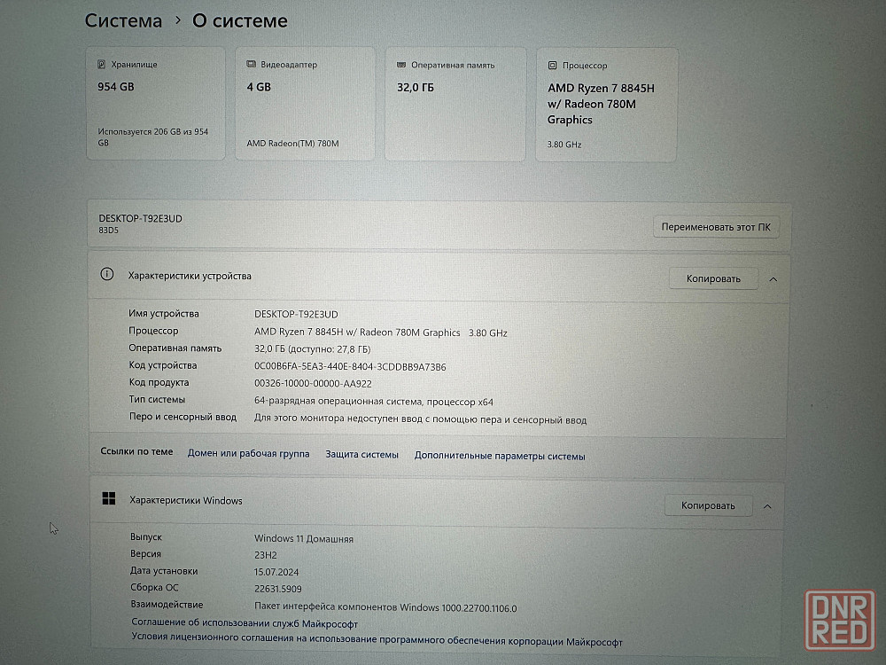 процессор: ryzen 7 8845hs