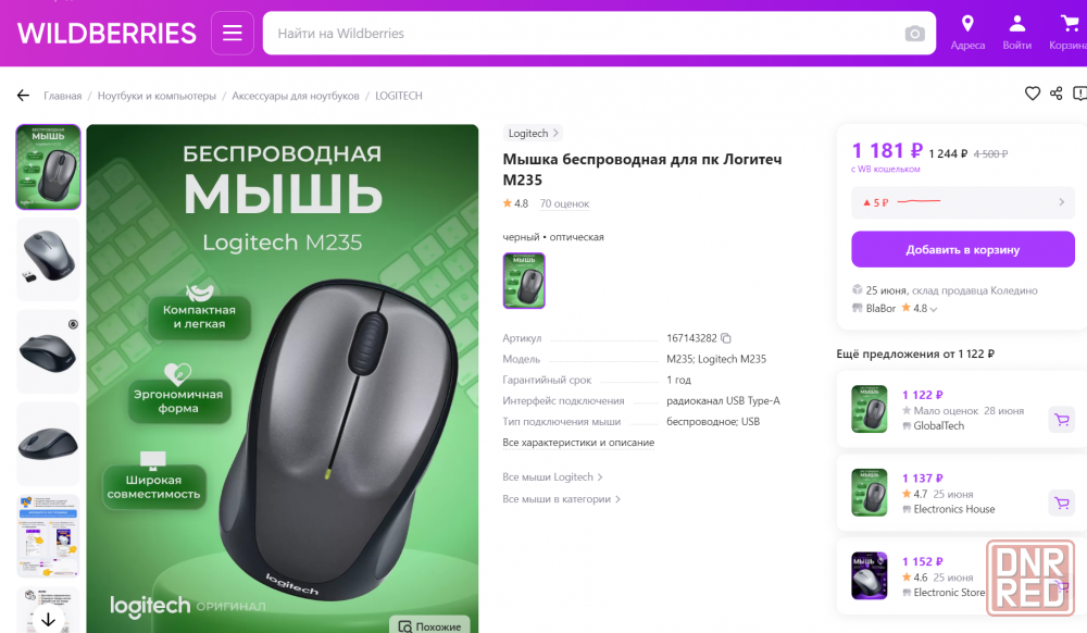 мыши logitech беспроводные, м185, полная работоспособность. работают от одной батарейки до 18 месяцев. на wb в разы дороже в наличии 3шт.