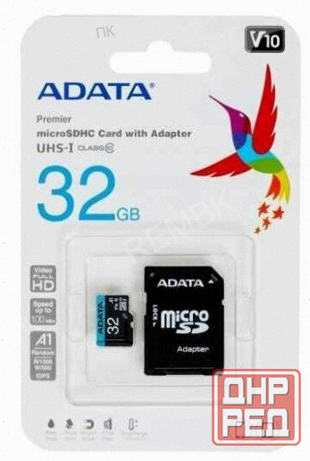 adata карта памяти 32гб adata ausdh32guicl10a1-ra1 microsdhc uhs-i class10 + адаптер