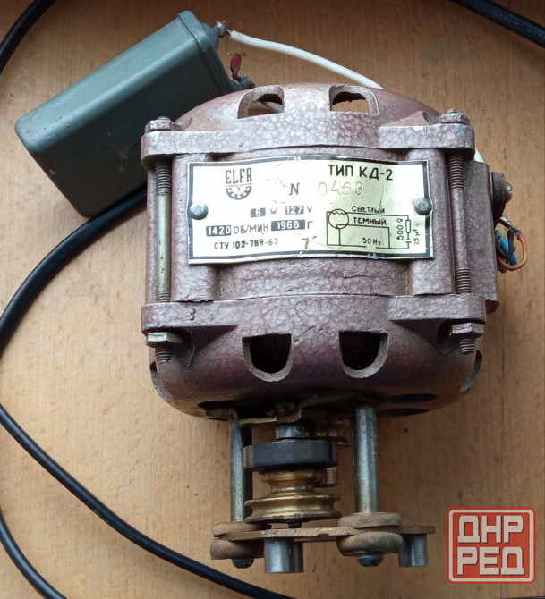 раритетный асинхронный электродвигатель кд-2 1968 г., применялся в ламповых катушечных магнитофонах производства эльфа вильнюс, работает от 220 в, 120в , фрикционной передачей, с двумя бронзовыми шкивами и креплением, характеристики на шильдике.