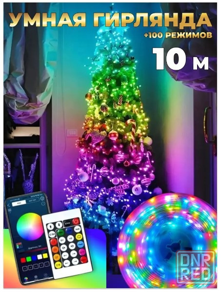 гирляндой можно управлять тремя способами, по bluetooth через смартфон , пультом дистанционного управления батарея в комплекте и кнопкой переключения режимов на usb адаптере самой гирлянды