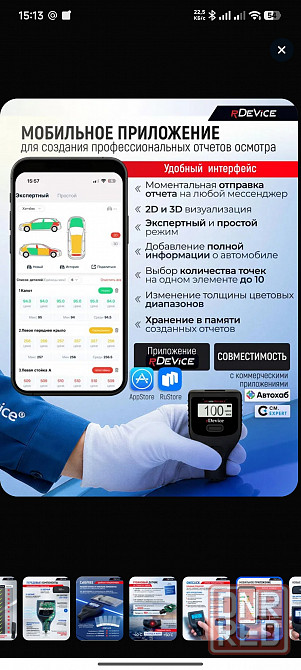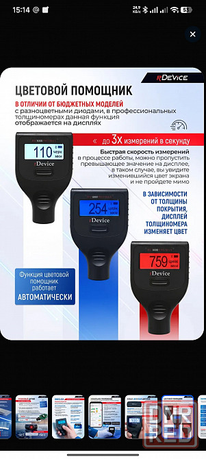 rdevice 1000 pro max имеет все современные функции для подбора автомобиля: измерение покрытий на всех типах металлов железо, алюминий, оцинковка, медь и др., определение цинка, специальной металлизированной шпатлевки, внушительный диапазон измерений до 6000микрон.