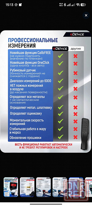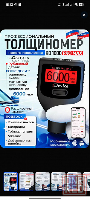 донецк . продам абсолютно новый толщиномер автомобильный лакокрасочных покрытий rdevice rd 1000 pro max - это флагман рынка, самое последнее поколение приборов, созданное на базе профессиональных рубиновых датчиков.