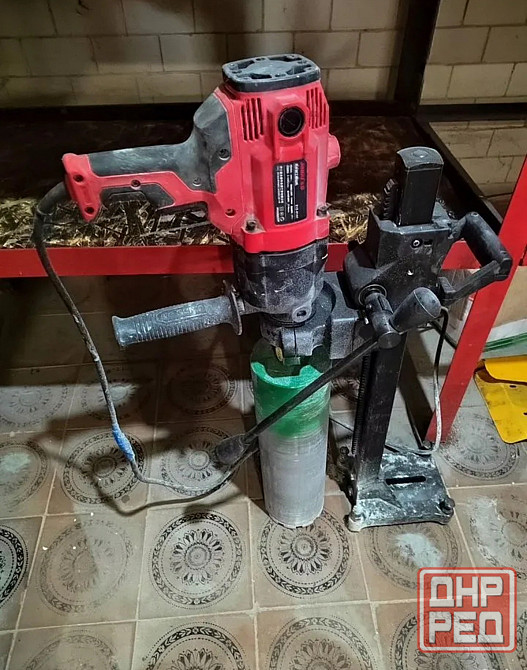 для бурения твердых поверхностей, бетон, камень, итл с установкой идет насос для подачи воды для мокрого бурения. в комплекте насадка на 40 мм и 120 мм состояние отличное, использовалась частно, бурилось около 8 отверстий, по сути прошла обкатка.