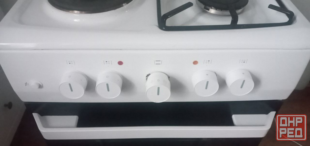 продам комбинированную электроплиту 2 конфорки газовые, 2 электрические, есть решетка, противень для духовки, не работает духовка причина неизвестна, мастера не вызывали, есть повреждение краски на боковой панели.