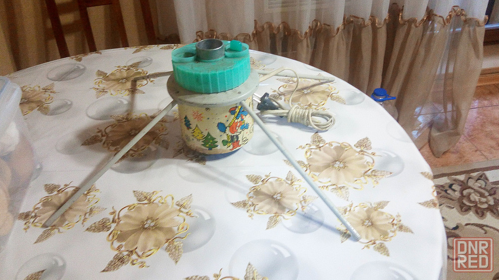 устройство для вращения домашней новогодней ёлочки со светящимися электро гирляндами,