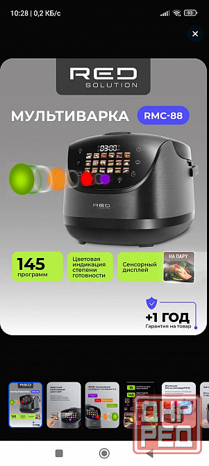 мультиварка 5 литров red solution colorsense rmc-88,145 программ, сенсорная панель, rgb - индикация степени готовности. пользовались 3 раза.