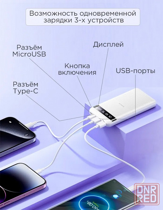 power bank 20000 мач с дисплеем и стабильной зарядкой 2.4a на каждый порт