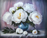 красивая картина "белые пионы в вазе" написана качественными красками, покрыта лаком.