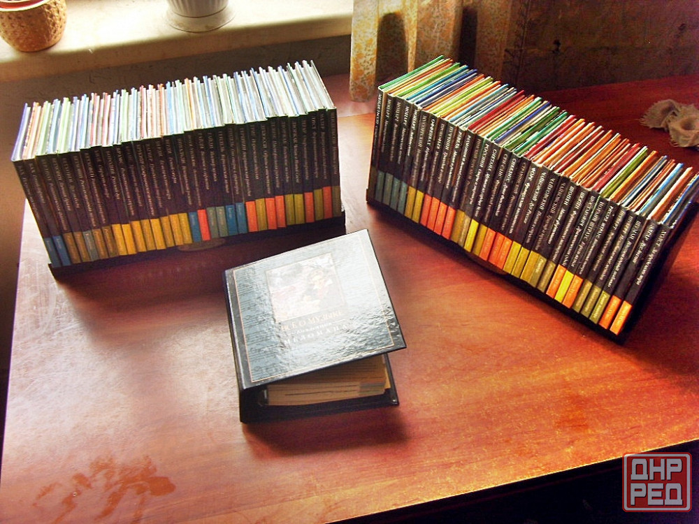набор дисков - 60 штук, две полочки по 30 штук - классических зарубежных и русских композиторов. стоят по алфавиту, разные цвета это разные периоды барокко, классицизм, романтизм и так далее. набор неиспользованный, каждый диск внутри в целофане. прилагается книжка-энциклопедия об истории и теории музыки, музыкальных жанрах и инструментах. в каждом диске про каждого композитора тоже есть буклетик с информацией и изображениями.