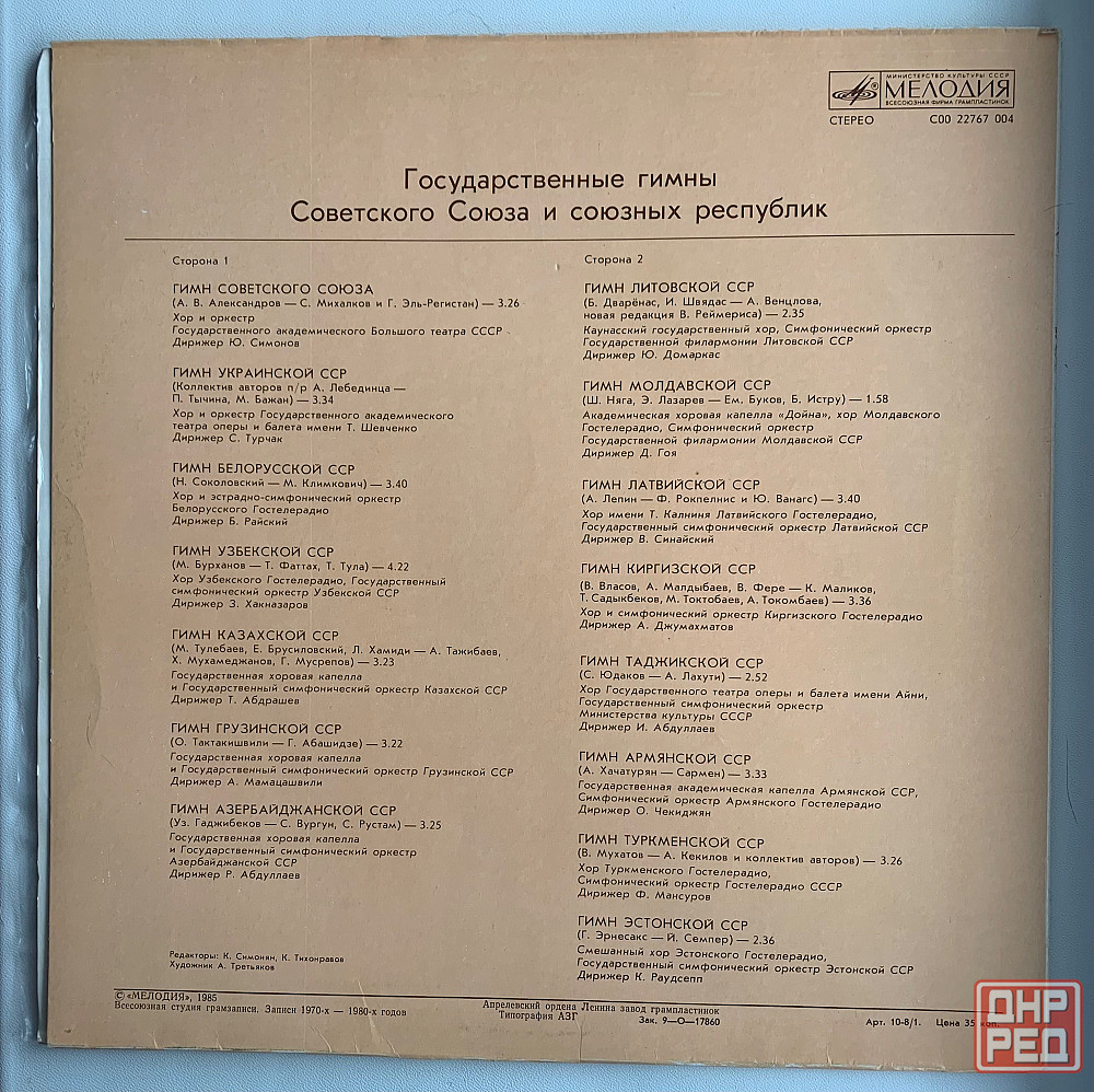 виниловая пластинка с гимнами ссср и союзных республик .