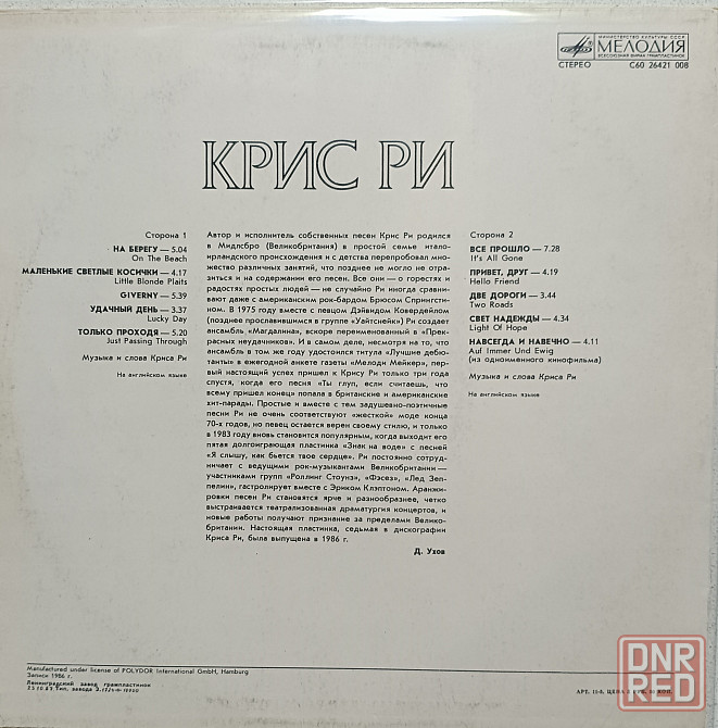 виниловая пластинка lp - chris rea - on the beach - мелодия лзг 1987 г. в отличном состоянии 2000 рублей. много новых пластинок и товаров смотрите в интересующих вас категориях: https://vk.com/market-208245949?section=album8