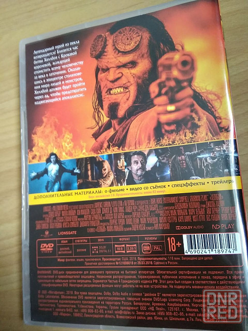 лицензионный dvd диск с фильмом "хеллбой", 2019 года производства, это третий фильм из серии про хеллбоя. диск новый, есть небольшой дефект заливки прозрачная капля с краю диска, никак не влияет на воспроизведение диска, проигрывается и сам фильм, и дополнительные материалы. продаю, так как не являюсь поклонником данного жанра кино. не пересылаю, встреча в донецке, +79493817..📲.