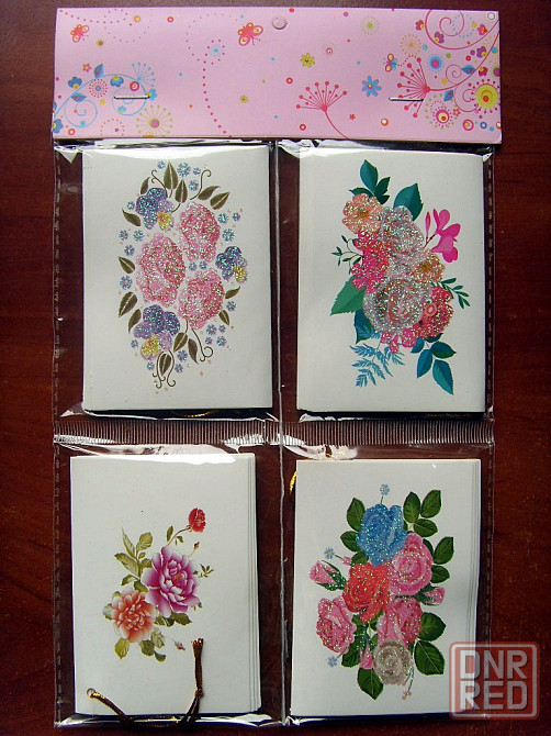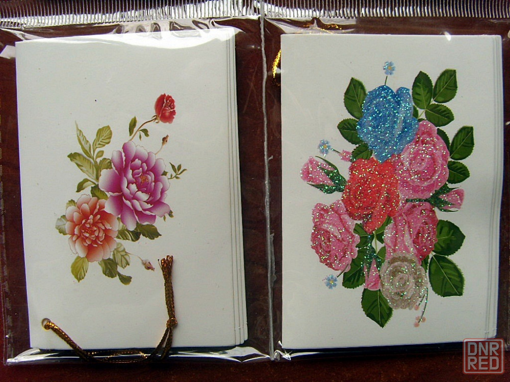 набор 16 штук двойных открыточек. в таком сложенном вдвое виде каждая размером 9 на 6 см. можно подписывать внутри и дарить. из красноярского края, у нас таких нет.