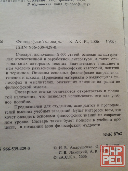 продам книгу. "философский словарь ". 1056 страниц. издательство 2006г. состояние отличное. есть другие дешевые книги. смотрите все мои объявления. звоните. фен 529 9745. есть телеграм.