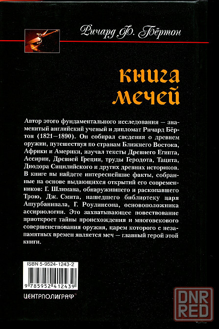 ричард бёртон — автор этого фундаментального исследования, путешествуя по странам ближнего востока, африки и америки, собрал множество интересных сведений о древнем оружии. в своей книге он рассказывает о происхождении и многовековом совершенствовании оружия, царем которого с незапамятных времен является меч.