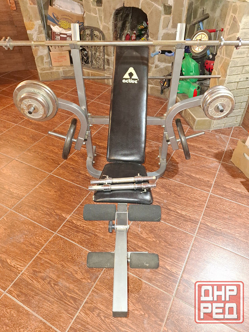 продам набор для жима. в набор входит скамья со стойками, два грифа 1,5 м и 1,7м, блины 2×20кг, 2×10кг, 6×5кг, 4×2,5кг, 4 грифа для гантелей.