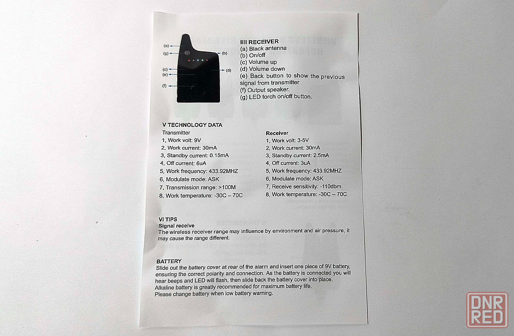- питание сигнализаторов: одна 9v батарея крона