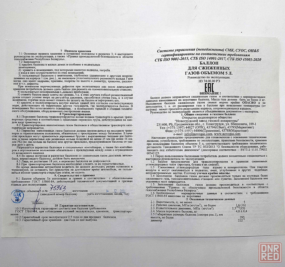 производитель: оао «новогрудский завод газовой аппаратуры» г. новогрудок, республика беларусь.