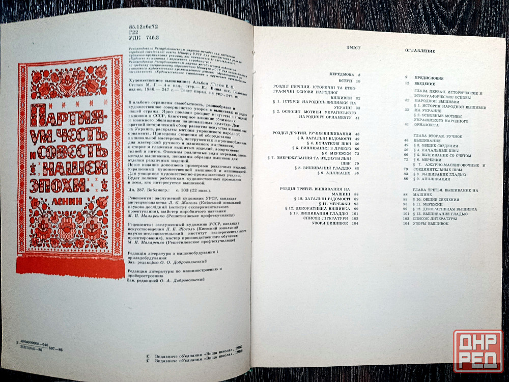 дан краткий исторический обзор развития искусства вышивания на украине, раскрыты мотивы украинского народного орнамента. приведены сведения об оборудовании вышивальной мастерской, инструментах и приспособлениях для мастерской ручного и машинного вышивания, о стирке и глажении вышитых изделий, ассортименте тканей и ниток. описаны различные виды мережки, швов, методы вышивания, показаны образцы вышивок для отделки изделий и примеры некоторых характерных изделий, украшенных художественной вышивкой и аппликацией.