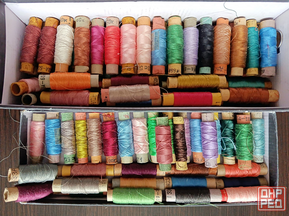 1 - катушки шелковых ниток для шитья и вышивки. натуральный шелк, около 100 катушек разного цвета.