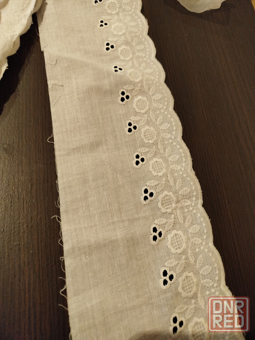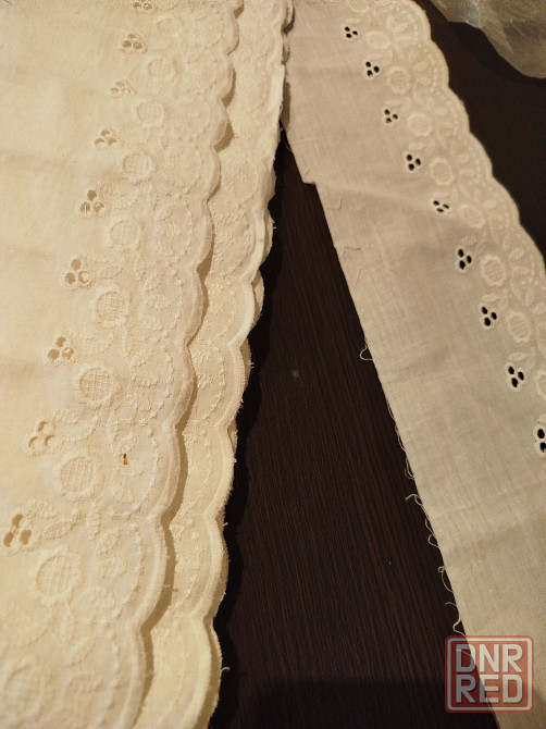 прошва, длина 6.7 метра, ширина 9 см. кружево 4.8 метра, ширина 5 см. цена кружева 100 рублей.