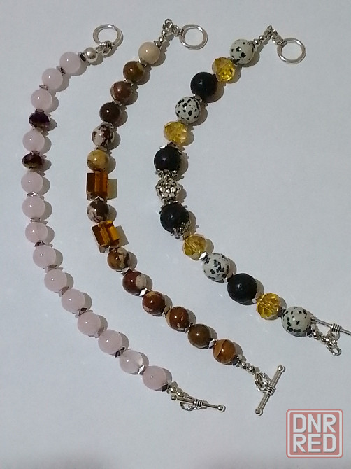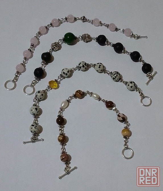 простые и лаконичные браслетик из натуральных бусин, которые можно носить с цепочкой или другими браслетами. первое фото: 1- розовый кварц 8мм, хрусталь, гематит. 2 - бусины из лавы 10 мм,хризопраз, бижутерный сплав, гематит. 3- яшма 10мм, хрусталь, гематит. 4- кофейная яшма 8мм,жемчуг, гематит.третье фото цена 600р. четвертое фото браслет из мини бусин аквамарина и лабрадора - 600р, бирюза, коралл, гематит -500р.
