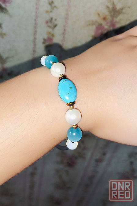 комплект: бусы и браслет из бирюзы небесного цвета в хорошем состоянии