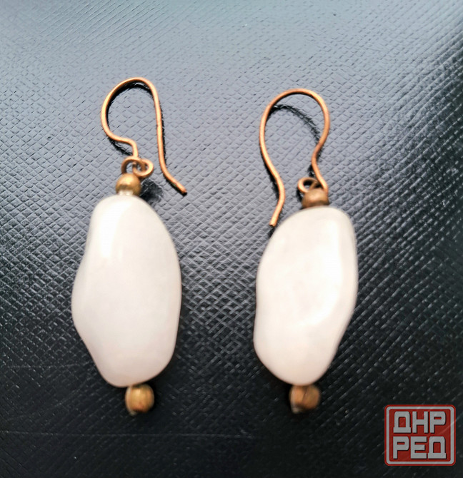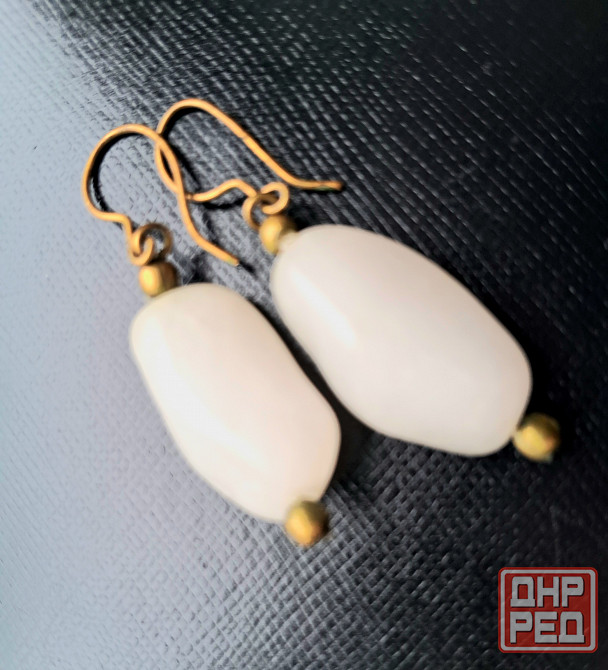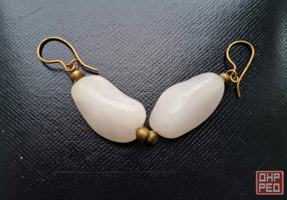 винтажные массивные серьги из натурального белого агата.