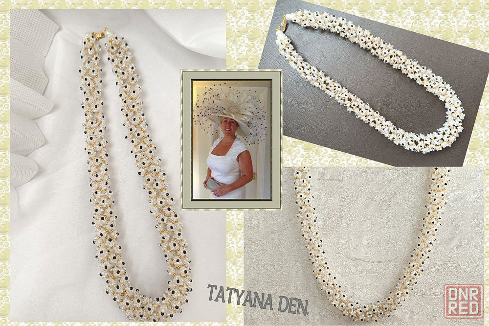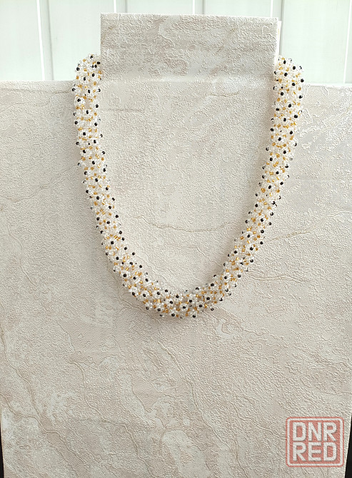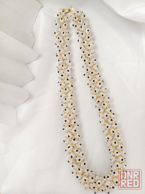 ажурный жгут из бисера прозрачного с черными серединками, 50 см.