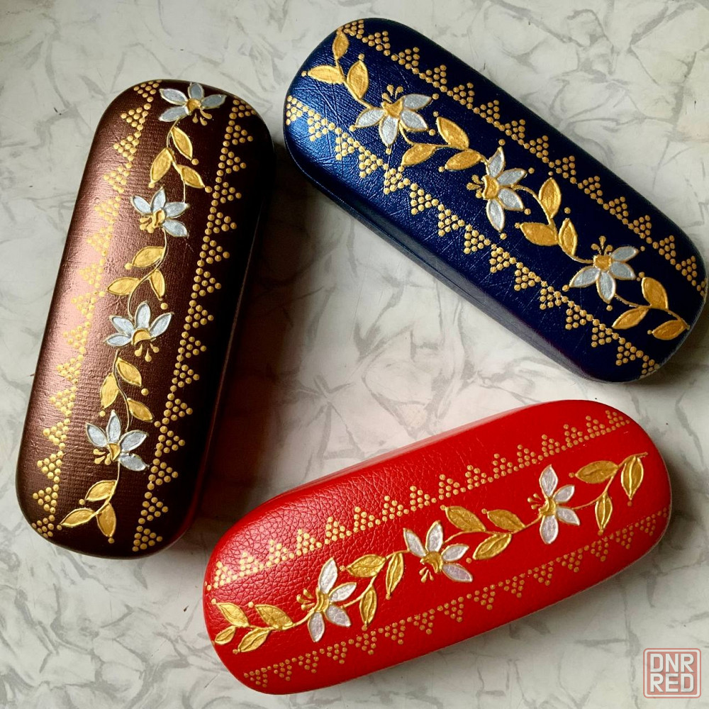 витражная роспись по верху футляров. в кошельке - роспись с двух сторон.
