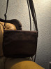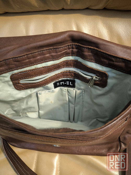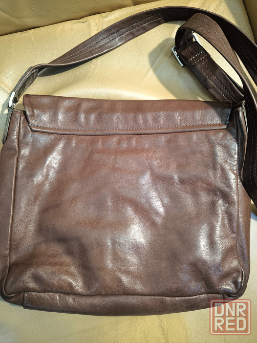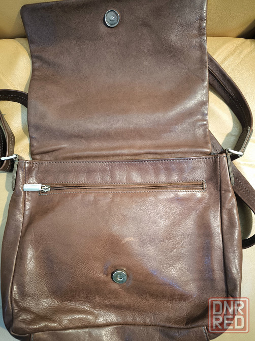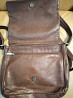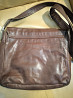 сумка почтальонка из натуральной качественной кожи коричневого цвета. очень вместительная. закрывается клапаном внахлёст с магнитной кнопкой. имеет один большой отдел с отсеками, снаружи сзади карман на молнии. размеры 25 на 22 см, длина плечевого ремня 110см, не регулируется. следы эксплуатации минимальные.