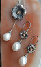 серебряные кулоны, серьги, кольца, с натуральным жемчугом, кулон swarovski.