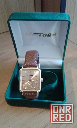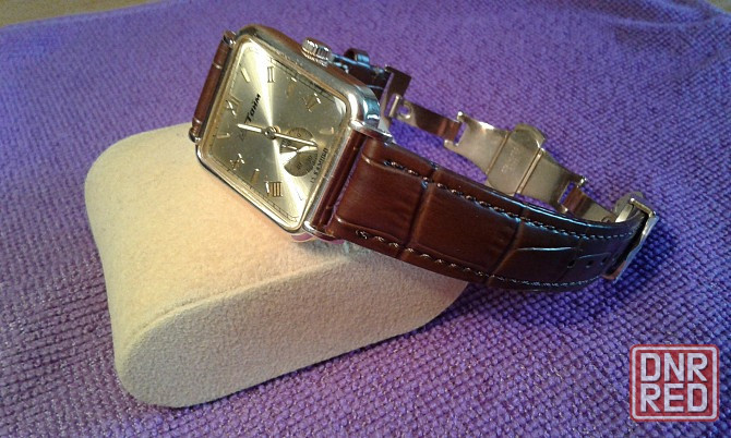 полная заводская комплектация - оригинальный бархатный футляр-шкатулка, новый оригинальный браслет из натуральной кожи.