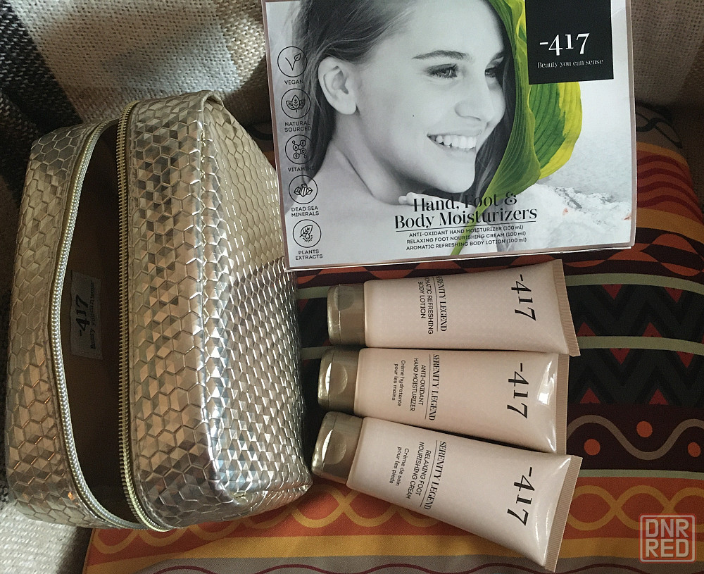 растительными экстрактами и витаминами для ухода за руками, за телом, и для ног.бархатная кожа будет у каждой девушки.в комплект входит 3 тюбика по 100мл. в специальном футляре.