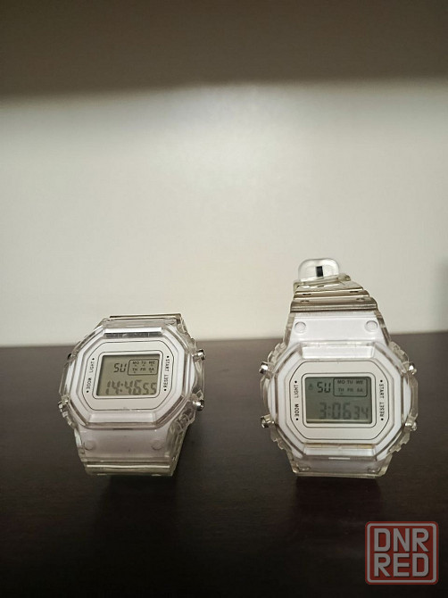 часы белые с прозрачным ремешком в стиле casio без бренда, время, секундомер, будильник, подсветка, 2 шт. в отличном состоянии цена за каждые. +79497999..📲