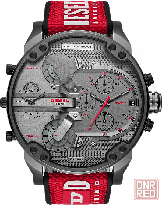 функции нескольких часовых поясов и хронографа - часы для молодого, стильного и уверенного в себе путешественника. mr. daddy 2.0. часы-хронографчасы-хронографчасы с двумя независимыми измерительными системами: одна показывает текущее время, другая измеряет короткие промежутки времени. счетчик регистрирует секунды, минуты и часы и может быть включен или выключен по желанию. центральная секундная стрелка таких часов обычно используется как секундная стрелка секундомера. с секундомером на основном циферблате. 12-ти и 24-х часовой формат12-ти и 24-х часовой формат временисистема отображения времени. в электронных часах устанавливается нажатием специальной кнопки. в аналоговых – 24-х часовая шкала может быть нанесена на безель, основной или дополнительный циферблат. времени. счетчики на 60 секунд и 30 минут. четыре механизма, на двух из которых указатели часов и минут в виде вращающихся дисков, на третьем - на вращающемся диске указатель секунд. четыре часовых пояса. завинчивающаяся задняя крышка. нейлоновый ремешок с надписью diesel и классической пряжкой.