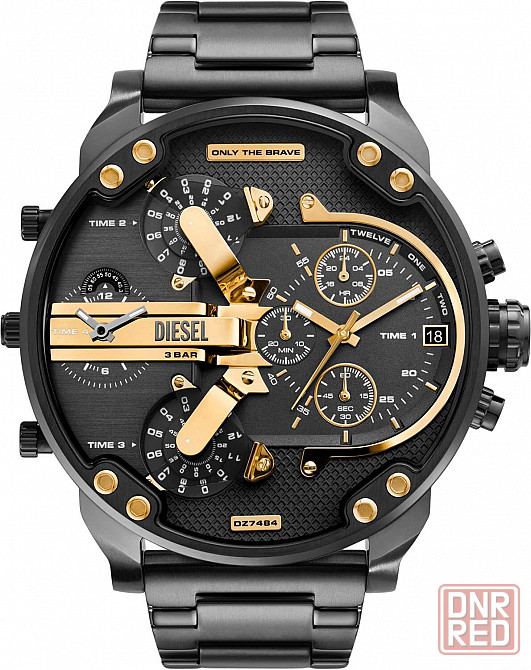 мужские часы-хронограф с секундомером на основном циферблате. круглый стальной корпус с матовыми и полированными деталями и темно-серым покрытием. многофункциональный темно-серый циферблат с акцентами цвета желтого золота. четыре механизма и четыре часовых пояса. на основном циферблате: метки в виде штрихов, минутная шкала, счетчики на 60 секунд и 30 минут, 12-ти и 24-х часовой формат12-ти и 24-х часовой формат временисистема отображения времени. в электронных часах устанавливается нажатием специальной кнопки. в аналоговых – 24-х часовая шкала может быть нанесена на безель, основной или дополнительный циферблат. времени, окошко даты в положении 3 часа. на двух дополнительных циферблатах указатели часов и минут в виде вращающихся дисков, на третьем — на вращающемся диске указатель секунд. надежный стальной браслет с темно-серым покрытием и раскладывающейся застежкой с двумя кнопками.