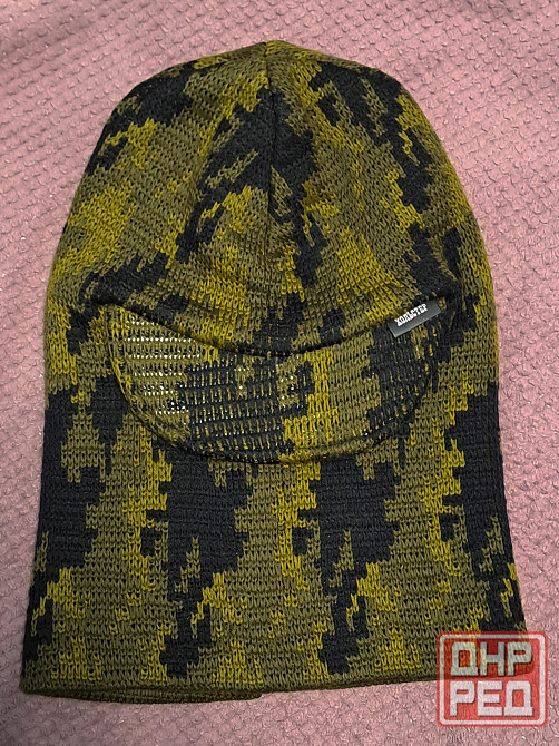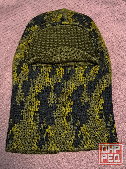 балаклава шапка охотничья, расцветка камуфляжная, утепленная, с козырьком, вязаная, защищает лицо от ветра, хольстер. на большой размер головы, 60 размер. замеры: высота 35 см, ширина 26 см. состояние идеальное.