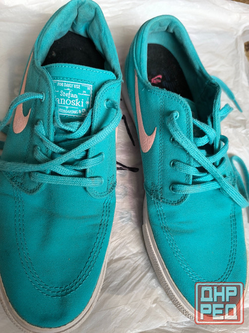 продам мужские кеды nike б/у, хорошее состояние. целые, но нужно постирать. цвет бирюзовый, размер 41-42, по стельке 27см. не на толстую ногу. цена 300₽. территориально киевский район, маяк, ветка. просьба писать сообщения.