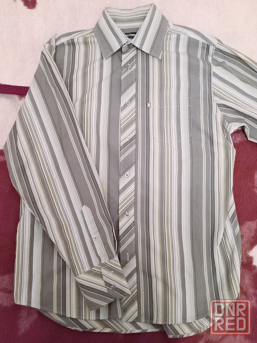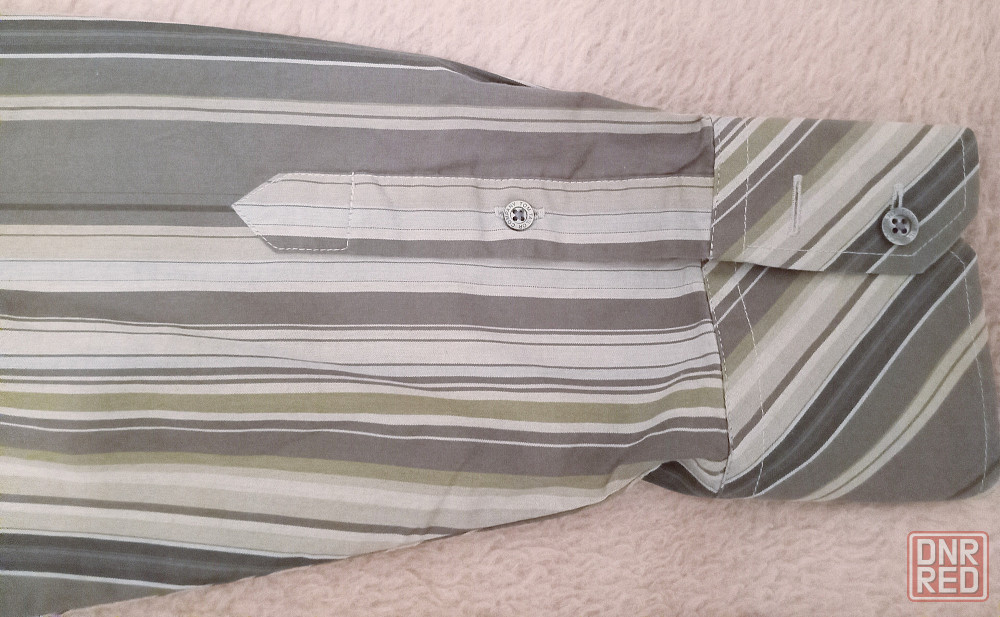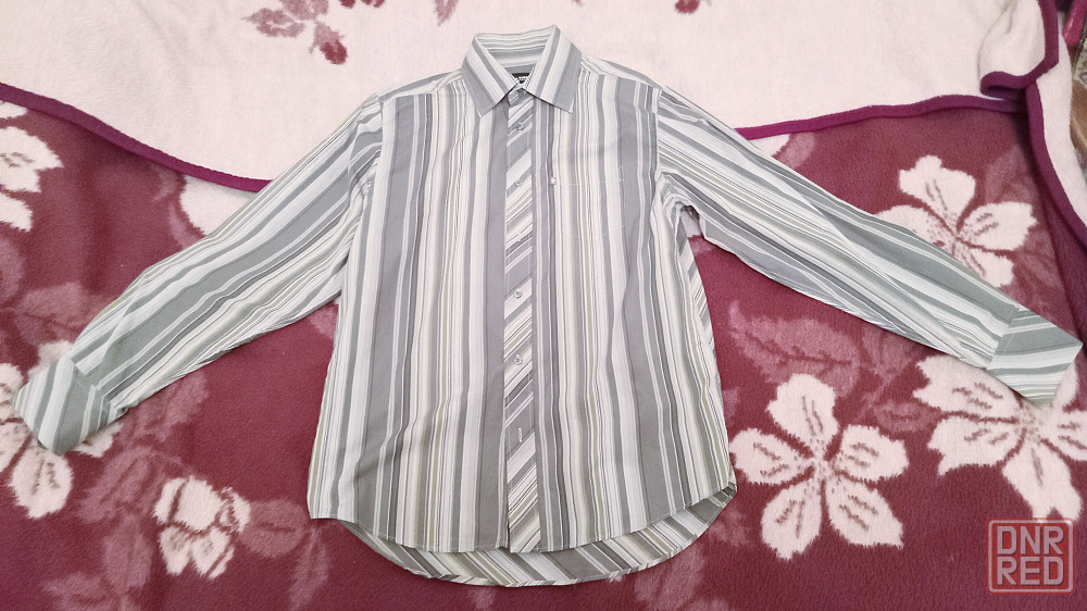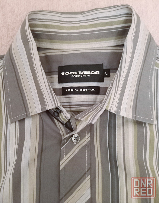 рубашка мужская tom tailor, б/у, серая в разную полоску, хлопок 100%, размер l где-то 52-54.