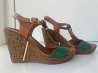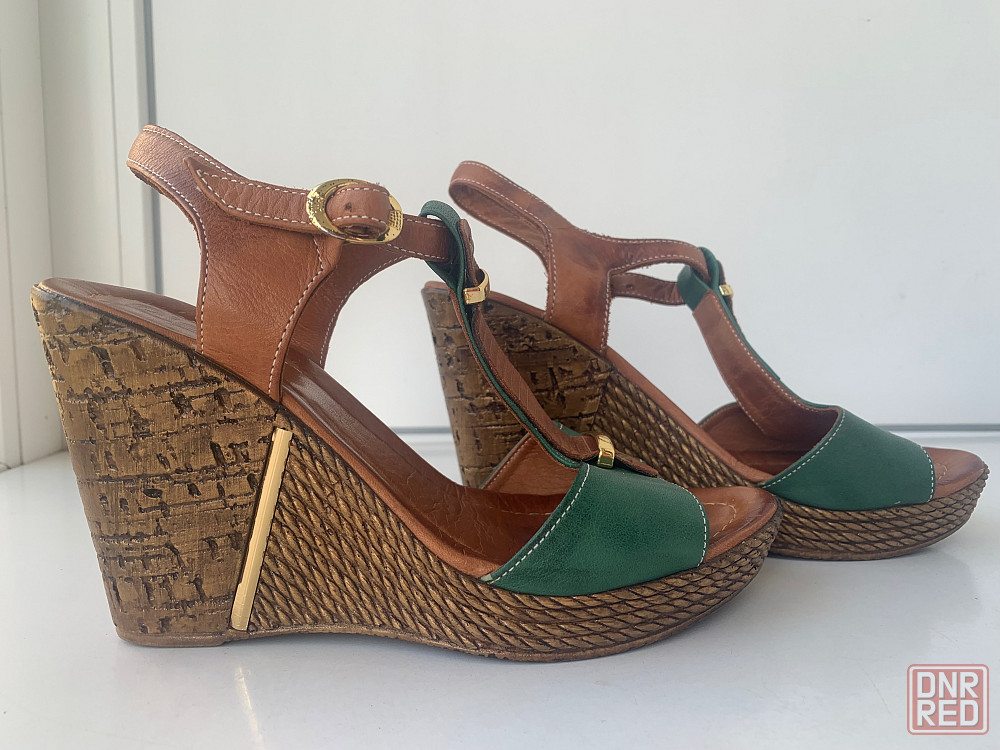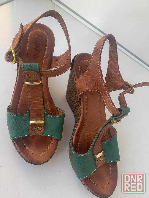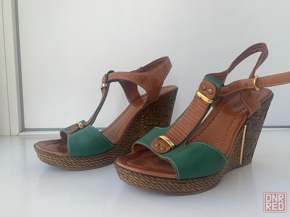женские босоножки из натуральной кожи, размер 37маломерный, подойдет на 36. в отличном состоянии. высота танкетки-10 см