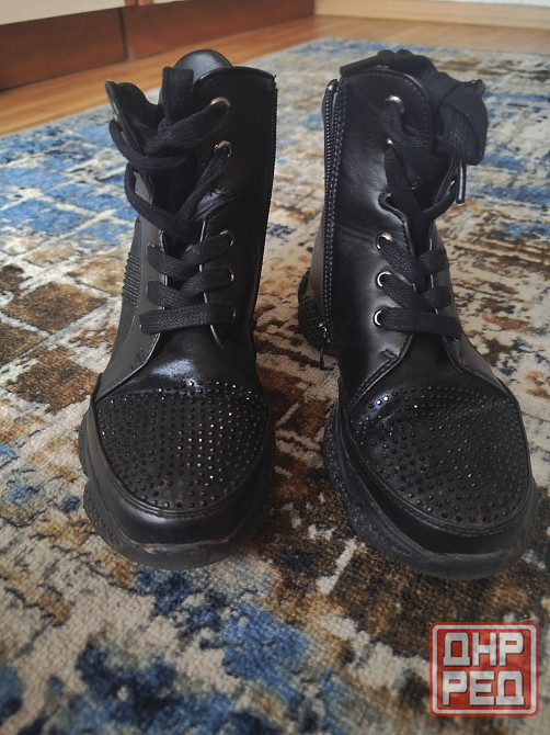 весенние ботинки женские 35-36 размер, б/у, на носке и сбоку чёрные стразы