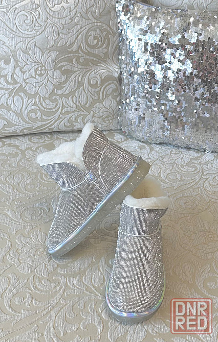 Красивые зимние блестящие угги с камнями, зимние сапоги, ботинки, натуральный мех ₽ 2 500