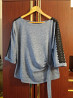 продам джемпер блузку блузу блузон серо-синего цвета. фото искажает цвет. размер примерно 50-52. состояние отличное, как новая вещь. ширина по переду под мышками примерно 57 см, длина по спинке от шейного шва 58 см, фасон детская мышь. есть другие варианты. смотрите все мои объявления. звоните. фен 529 9745. есть телеграм.