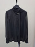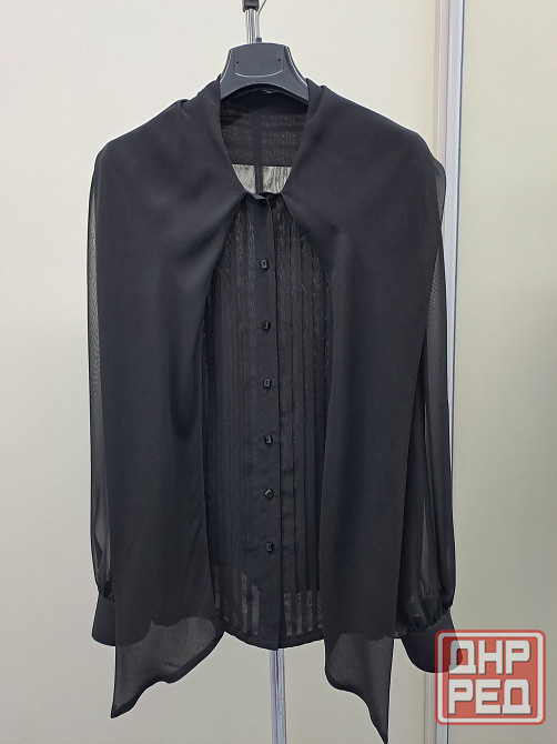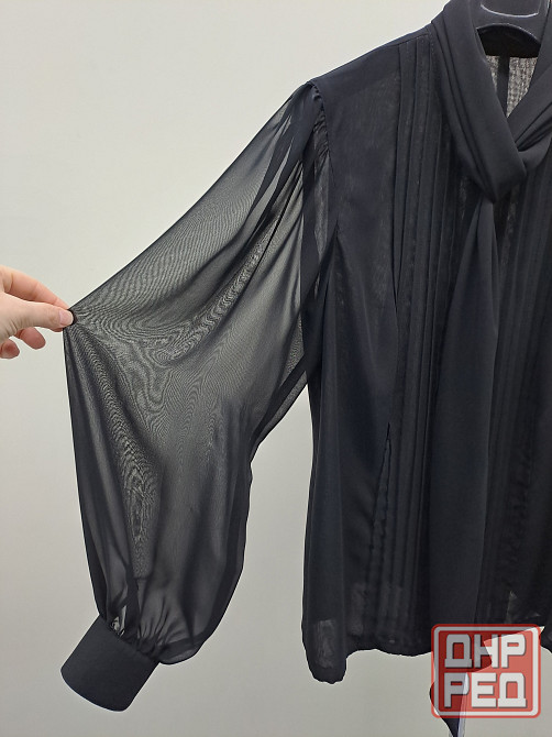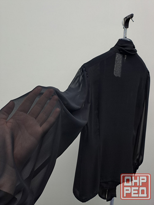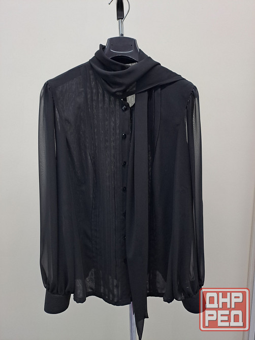 шифоновая блузка 44-46 приталеная с шарфом. шила на заказ в ателье, не носила. рукава широкие, объемные, но пройма не большая. длина рукава 64 см, плечи 38 см, ширина изделия в груди по линии подмышек 50 см, ширина в области талии 43 см, длина по спинке 65 см. ткань не тянется. рукава в один слой, перед и спинка ткань в два слоя, слегка просвечивает. сзади вытачки по спине и спереди сделан рельеф в области груди, крой приталеный.