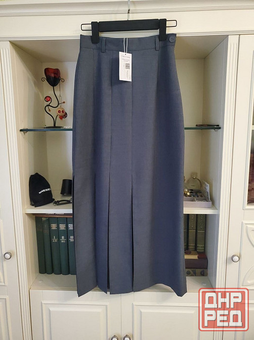 новая, с этикеткой, размер xs. на вб в карточках товара как всегда стилизация уродская, но в жизни юбка очень эффектная. костюмная качественная ткань, швы не тянет. изначально странный крой в бёдрах торчали "уши" исправила в ателье, но надеть так и не случилось - поправилась.